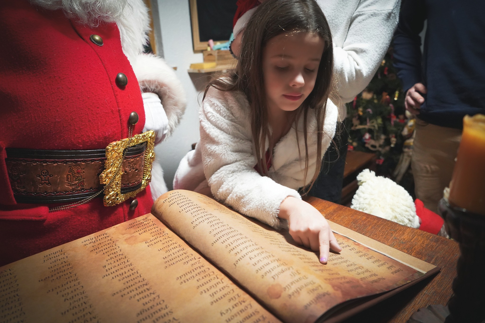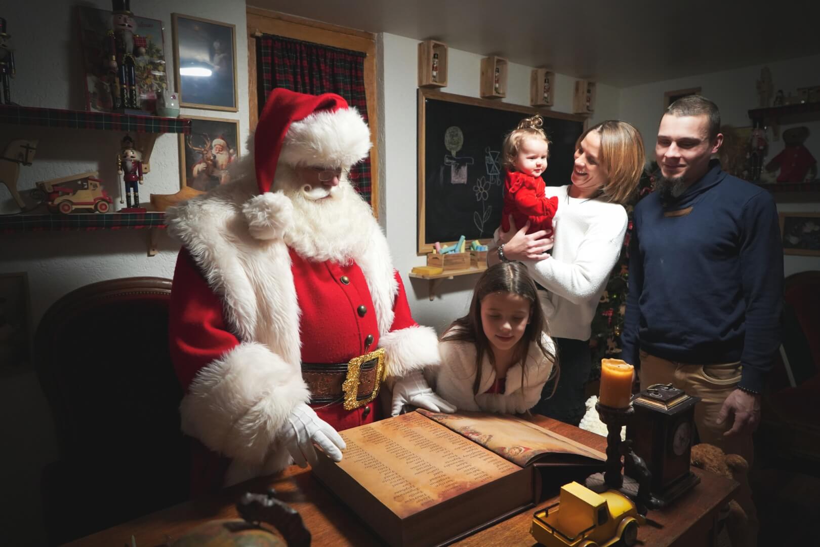 Le Père Noël ouvre le livre des enfants sages